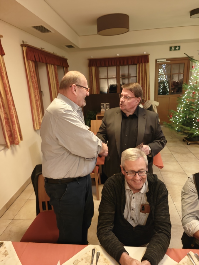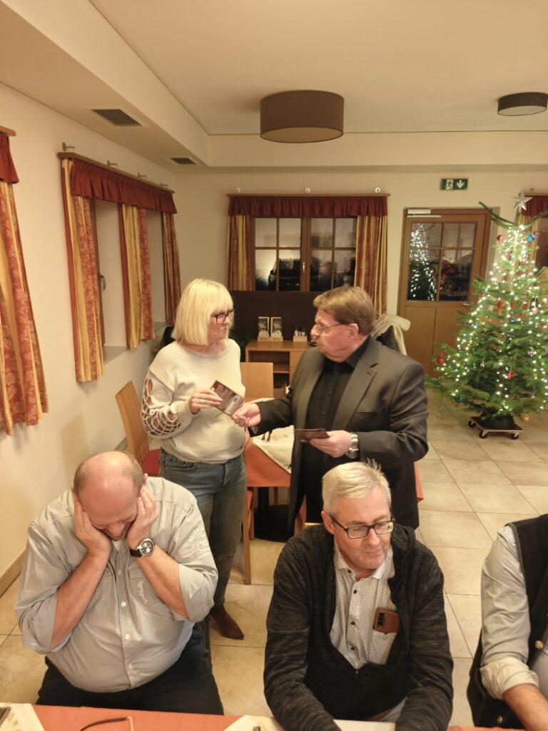 • Weihnachtssterne, Wein und weitere Gutscheine wurden als Weihnachtsgeschenke an alle Anwesenden durch Manfred Kickinger überreicht.